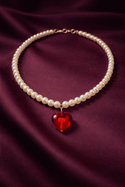 Classic Pearl Necklace with Toggle Clasp and Heart Charm